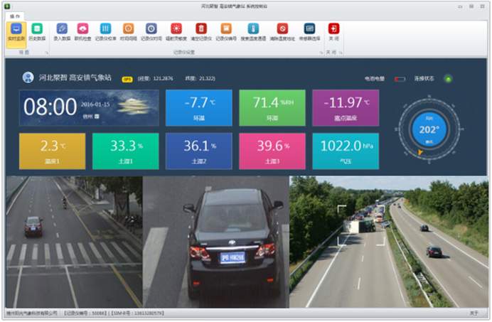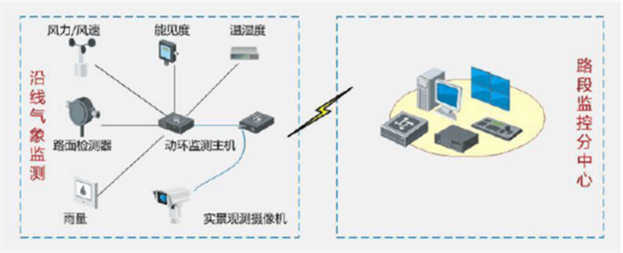系統(tǒng)由高速公路自動(dòng)氣象站、數(shù)據(jù)傳輸、數(shù)據(jù)處理應(yīng)用中心和道路道路監(jiān)控等部分組成。高速公路自動(dòng)氣象站可以觀測(cè)的氣象要素包括常規(guī)氣象要素(風(fēng)、溫、濕、雨、壓)、能見(jiàn)度和路面狀況(路面溫度、干濕狀況、雪、結(jié)冰等)。