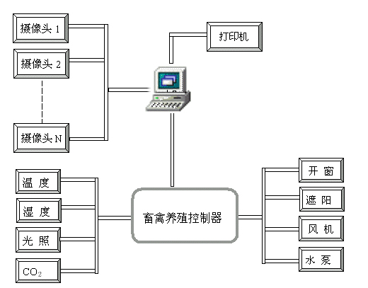 目前,國內畜禽養殖飛速發展。要求與之相配套的養殖設備及高性能的計算機控制。我公司經過多年研究,開發出適合我國國情的LT/YZK-2003畜禽養殖監控系統。該系統同國外相比,具有良好的性價比和穩定性。硬件可靠,軟件界面友好,功能強大,全中文操作。本系統可應用于畜禽養殖監控,如牛舍、雞舍、豬舍等。本系統可采集監測溫度、濕度、CO2等參數。并對各種參數進行數據存儲,生成報表、曲線等。方便用戶分析決策。同時根據采集參數對開窗、遮陽、風機水泵、環流風機等設備進行自動控制。此外,還可連接多媒體監控系統,通過高性能攝像機將舍內動物生長情況狀態傳送至計算機或大屏幕電視上,隨時監控舍內情況。