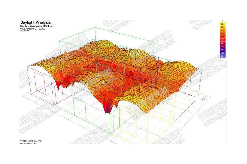 本采光測試系統測試時不受氣候的限制,即在晴天可測出標準全云天情況下的采光系數;在陰天可測出某地某日某時某方向標準晴天空下室內某點的采光系數。而且可以測出各窗及各反射面對該點形成的采光系數分量。也就是說可以分析出各個窗、及反射面對該點所做的貢獻。