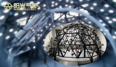 老式的人工天穹采用固定的燈光系統(tǒng)照明白色半球面來模擬,由于靠內(nèi)壁擴(kuò)散,需將內(nèi)表面進(jìn)行擴(kuò)散處理,往往受制于現(xiàn)場人為的施工質(zhì)量,效果很難達(dá)到;另外,由于光源只能固定在底部,各點亮度都是靠各組光的疊加產(chǎn)生的亮度分布,每組燈的調(diào)控都會影響全局,很難調(diào)試。本系統(tǒng)采用節(jié)能高效的LED矩陣,特制擴(kuò)散燈罩、進(jìn)口定制高透過率擴(kuò)散膜。將光源布置在透光擴(kuò)散膜后面,提高了光效,而且由于每組燈的調(diào)控,只影響該組位置的亮度,所以調(diào)試起來很方便,也更精準(zhǔn)。