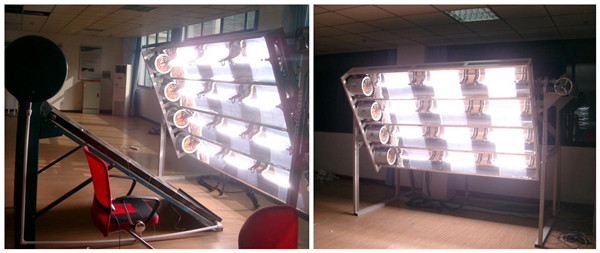 (4)裝有四組大功率風機,對發射光源環境進行強制冷卻,可對太陽能熱水器、集熱器、電池板、太陽能發電站等產品進行直接照射。