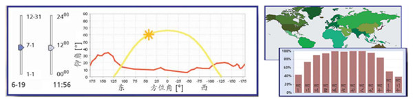 (2)太陽能系統模擬計算統計軟件:可以根據被測產品的數據, 模擬其產品在世界各地的應用效果分析圖表,并建立產品檢測元件庫。