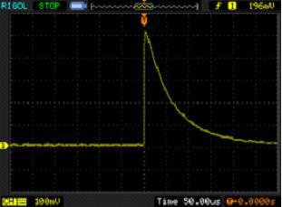 3) 組件無光照,用沖擊電壓發生器施加脈沖電壓,波形如圖五所示。脈 沖波形用示波器檢測,每次試驗時應檢驗上升時間和脈沖持續時間;
