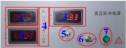 2.3、 3是脈沖電壓顯示:可通過下面旋鈕來加減,0 ~ 8KV可調。