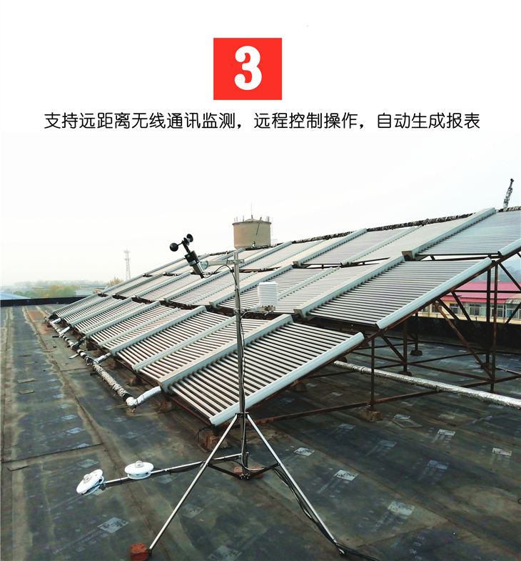 TRM-2D型可再生能源建筑應用測評系統,其采用智能化控制技術,檢測精度高,實現無人測試,提高工作效率,連接微機自動生成能效測評報告,保證建筑工程的設計指標及施工質量驗收標準,同時該產品還可以對當地的太陽能資源進行監測,為設計太陽能系統工程提供數據。
