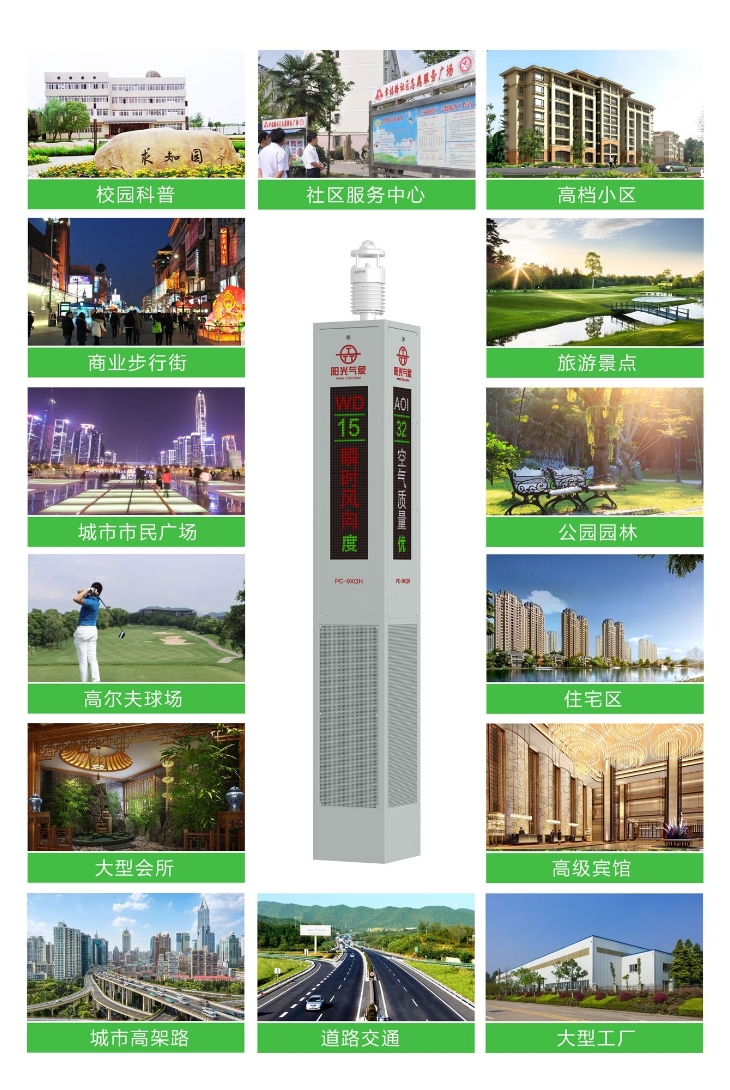 PC-9XQH 景區氣象站是錦州陽光氣象旗下的一款集氣象環境監測、語音播報、LED彩屏顯示、智能安防、美化園林等功能于一體的智能平臺型氣象環境監測產品。實現了物聯網云端監測,是基于大數據軟件技術和智能傳感器硬件技術研發出的新一代高科技產品。