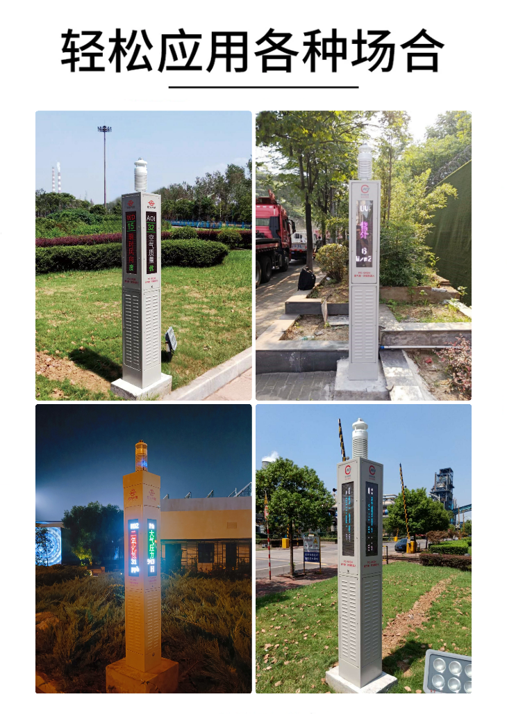 3. 本機自帶四面LED顯示屏,可實時顯示監測數據,也可遠程傳輸至其它大顯示屏;