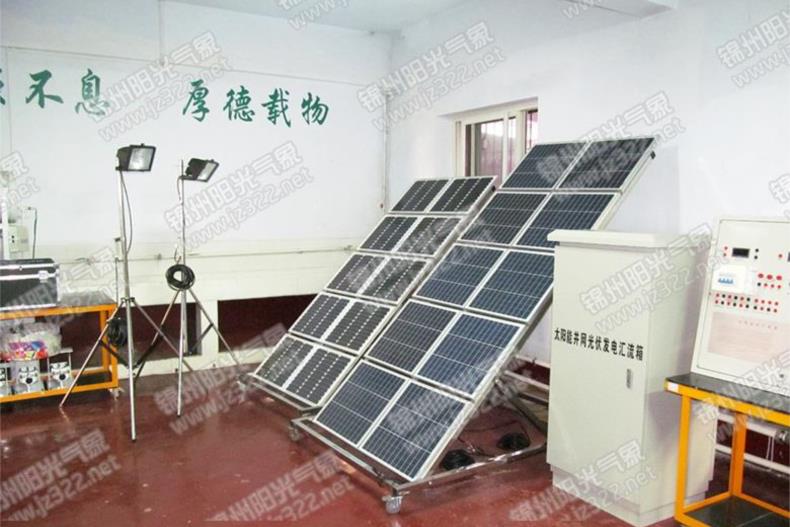2、光伏發電實訓實驗裝置可以自動跟蹤太陽運轉,使太陽光垂直照射到物體表面,保證跟蹤架上產品獲得最大太陽輻射能量,系統由底板、支架、絲杠、液壓、齒輪,步進電機,電腦控制器,電源等部分組成。