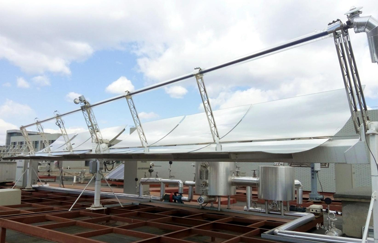 5、系統的支撐結構用于固定槽拋物面聚光鏡,并配合控制系統對集熱陣列進行一維跟蹤,以獲 得有效太陽輻射能;