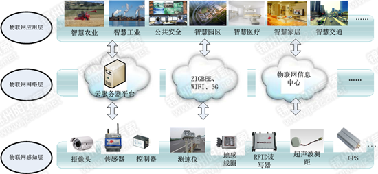 基于工程方案可以實現(xiàn)通用的物聯(lián)網(wǎng)網(wǎng)絡(luò)架構(gòu),在傳感層通過無線組網(wǎng)或現(xiàn)場總線組網(wǎng)實現(xiàn)對各種物理量的傳感采集和反饋控制,通過RFID讀寫器實現(xiàn)對人或物體的ID識別,通過視頻圖像采集設(shè)備實現(xiàn)環(huán)境圖像數(shù)據(jù)獲取,數(shù)據(jù)通過網(wǎng)關(guān)轉(zhuǎn)換為標(biāo)準(zhǔn)的網(wǎng)絡(luò)數(shù)據(jù)流匯聚到云端服務(wù)器,在服務(wù)器端實現(xiàn)數(shù)據(jù)的智慧處理,再由服務(wù)器通過Internet或3G網(wǎng)絡(luò)實現(xiàn)廣域的數(shù)據(jù)發(fā)布,與各種終端,包括手機實現(xiàn)智能的交互與管理。