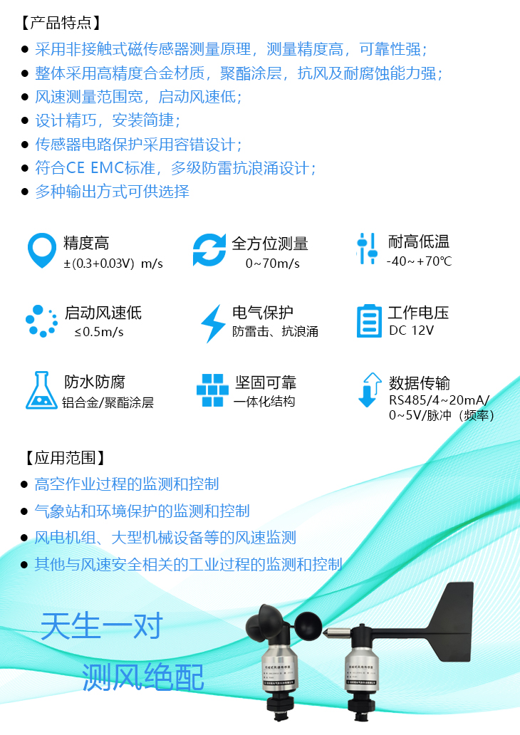 EC-9SA風速傳感器是一款高可靠性、高性能的風速測量傳感器,產品輸出與環境風速成線性關系的電信號,產品內置有強抗射頻、抗電磁干擾以及防雷擊浪涌保護電路。適用于高空作業,工程機械,港口機械等場合,主要結構件由合金材料制作完成,并進行表面處理,產品具備良好的防水、耐腐蝕能力,內部及轉動部件均采用密封設計,能有效的防止水、鹽霧以及沙塵的浸入。