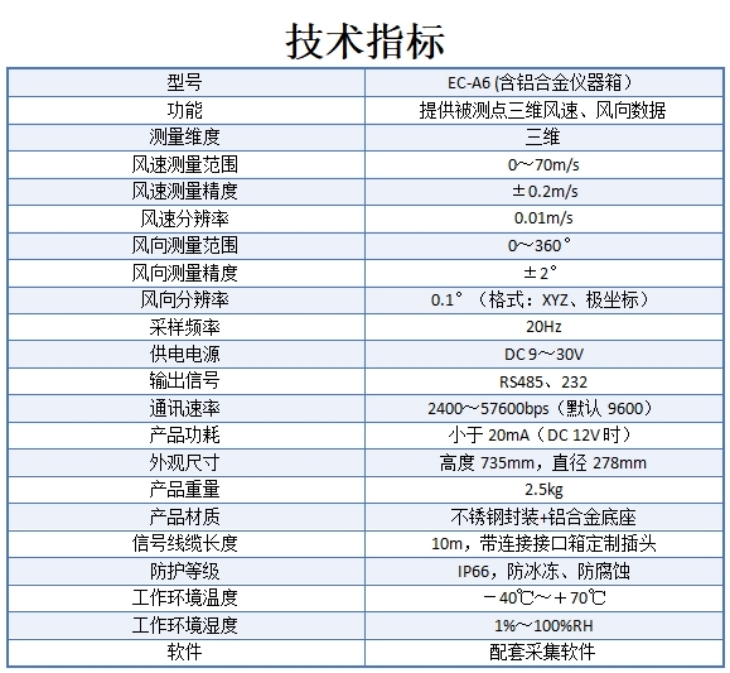 EC-A6三維超聲波風向風速傳感器