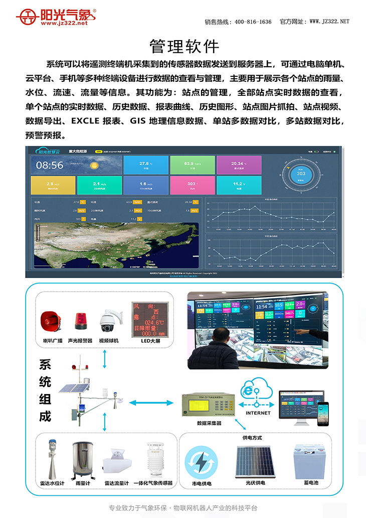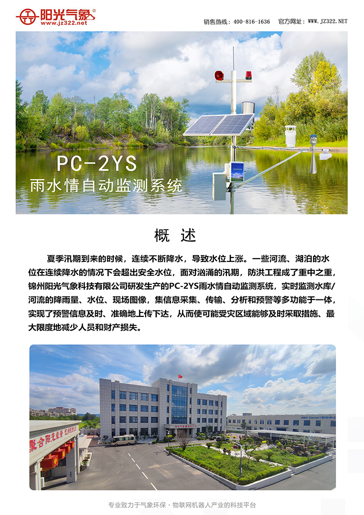 夏季汛期到來的時候,連續不斷降水,導致水位上漲。一些河流、湖泊的水位在連續降水的情況下會超出安全水位,面對洶涌的汛期,防洪工程成了重中之重,錦州陽光氣象科技有限公司研發生產的PC-2YS雨水情自動監測系統,實時監測水庫/河流的降雨量、水位、現場圖像,集信息采集、傳輸、分析和預警等多功能于一體,實現了預警信息及時、準確地上傳下達,從而使可能受災區域能夠及時采取措施、最大限度地減少人員和財產損失。